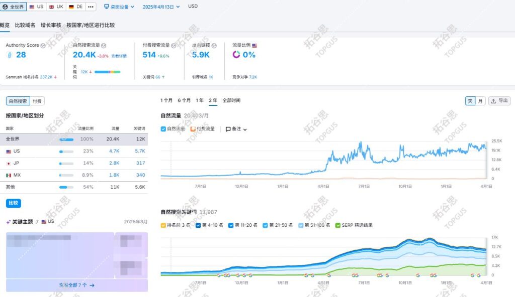 - 自然搜索流量显著跃升: 品牌网站的月平均自然搜索流量已成功增长至20,000次,标志着其在全球数字市场的可见度与影响力得到了质的飞跃。